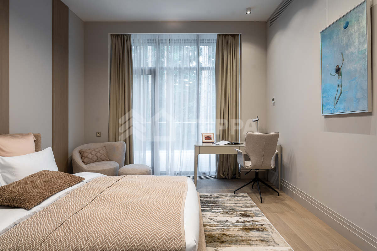 Второй этаж предлагает 3 мастер-блока со своими санузлами и гардеробными, каждая спальня с выходом на террасу или балкон. Высота потолков 3.5 метра и центральное кондиционирование для вашего комфорта.