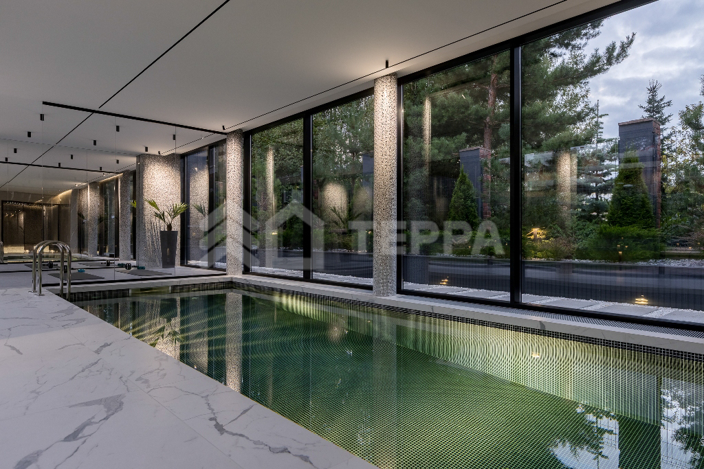 - СПА-зона: хамам, с/у, бассейн 9 х 4 м, спортзал, гараж на 2 авто, квартира для персонала с отдельным входом
