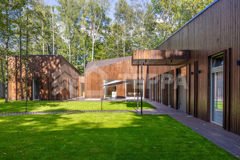 Участок площадью 25 соток утопает в зелени под вековыми дубами. Вилла расположена в уникальном стародачном месте — посёлке Новодарьино РАН, всего в 20 км по Рублёво-Успенскому шоссе. Дорога до Москва-Сити занимает всего 30 минут в любое время суток. В шаговой доступности — вся необходимая инфраструктура: «Азбука вкуса», ВкусВилл, торговые центры, медицинские учреждения премиум-класса — Центр «Мать и дитя» и клиника «Лапино».