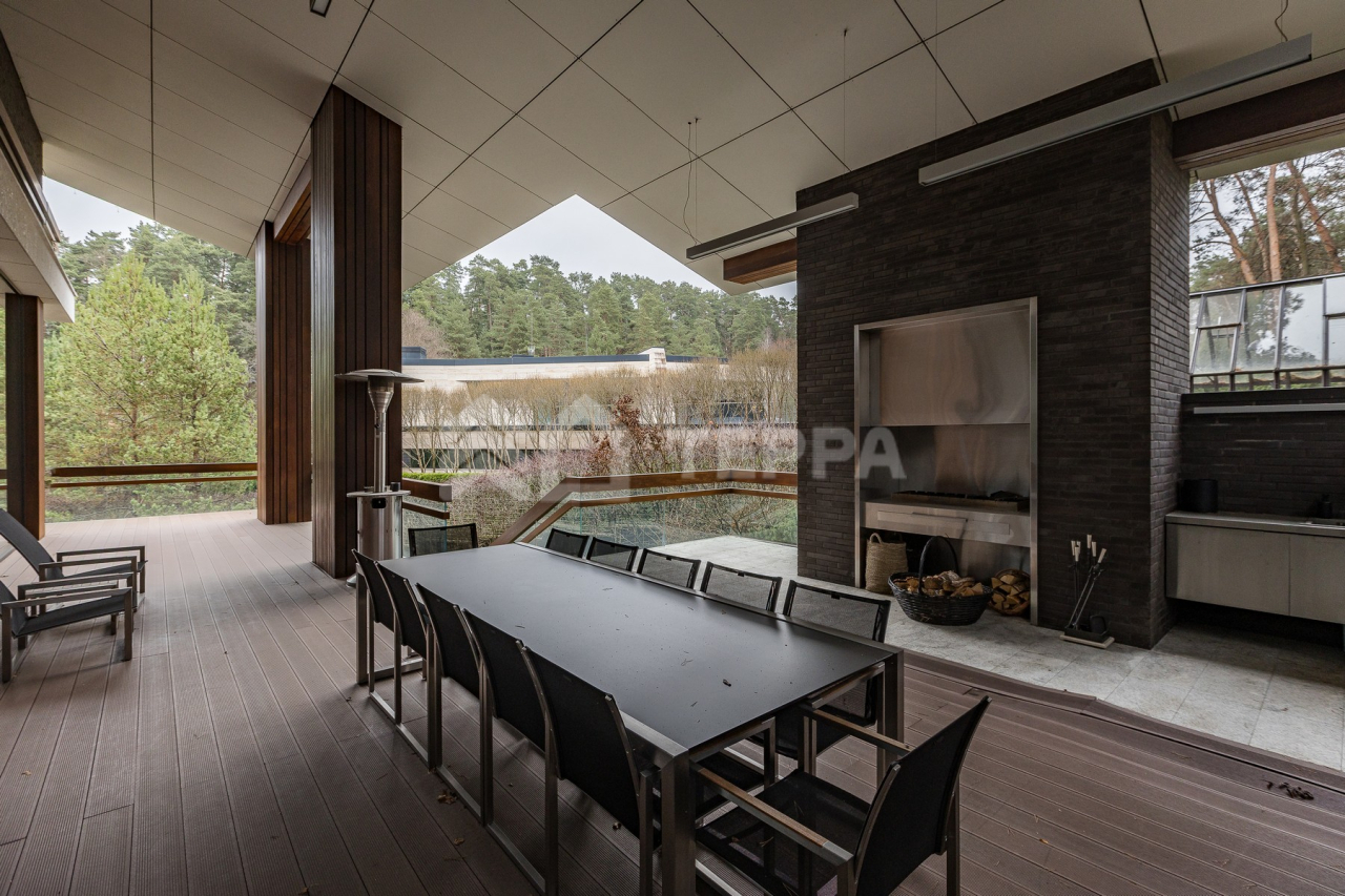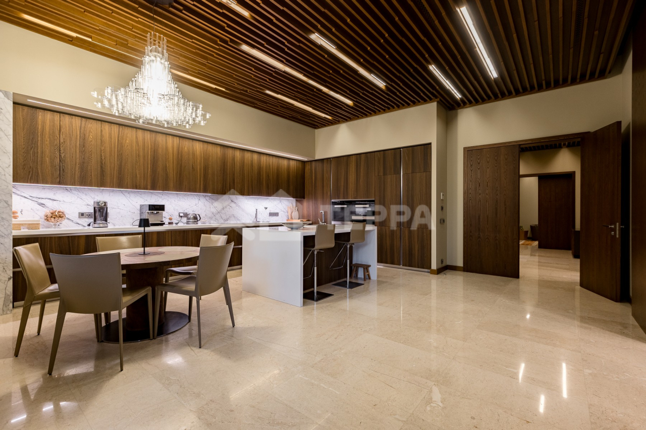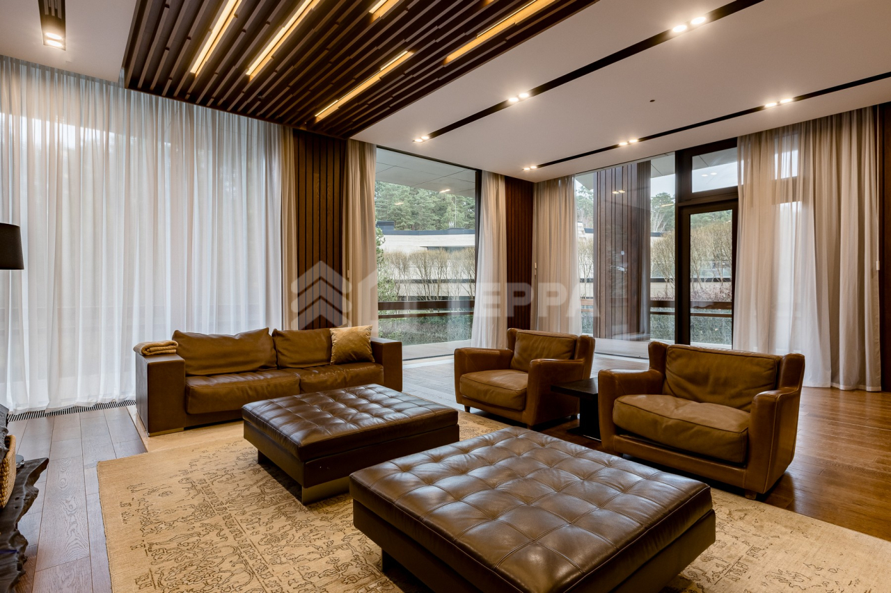 Особенность дома: просторные помещения с продуманным функционалом, включая собственный лифт, элегантный кабинет, четыре спальни с отдельными санузлами, двухкомнатную квартиру специально обустроенную для проживания обслуживающего персонала, гараж на два автомобиля, благоустроенную парковочную зону, просторную террасу с барбекю. Участок площадью 20 соток с профессионально разработанным ландшафтным дизайном.