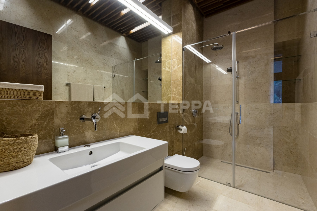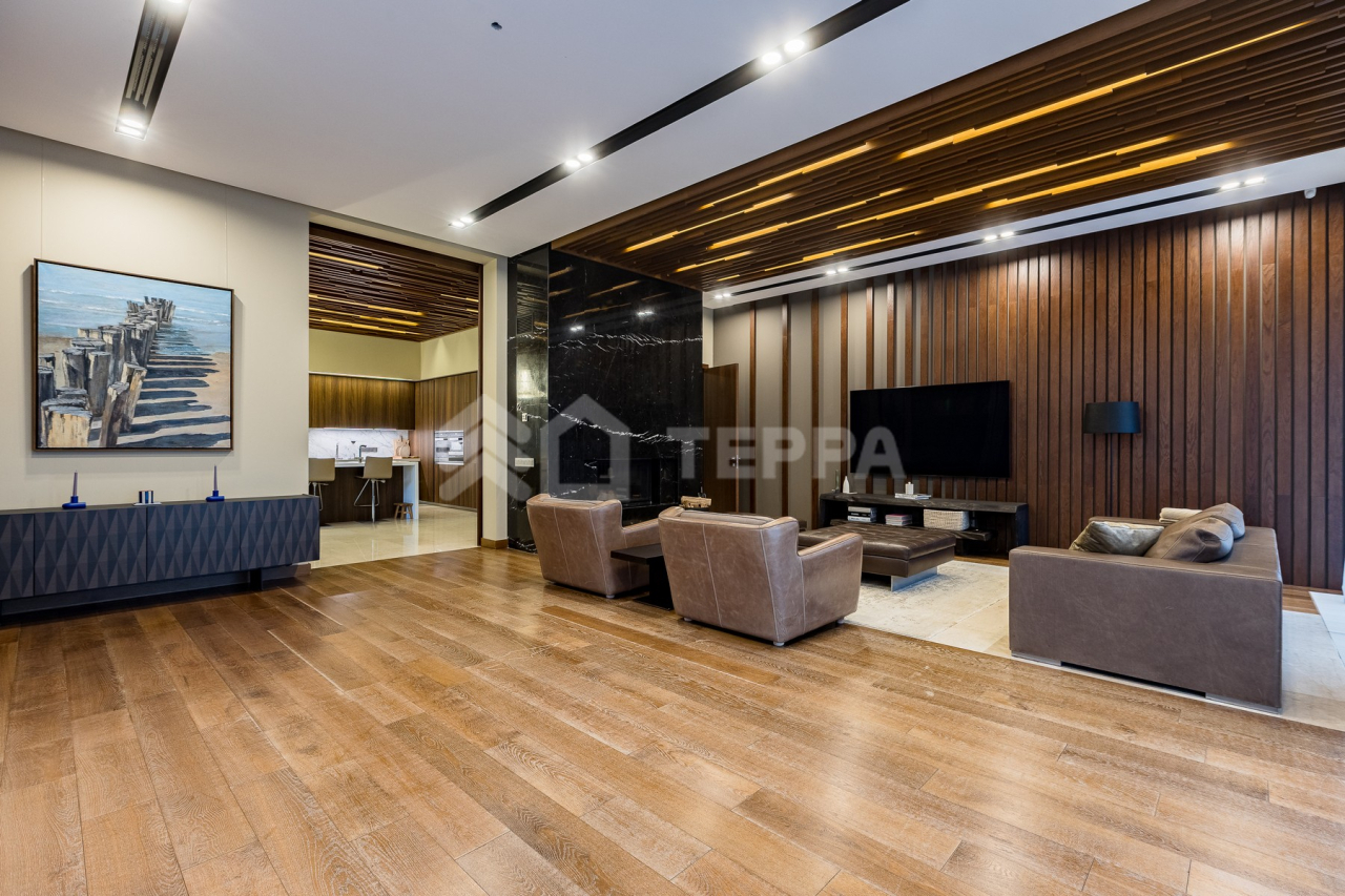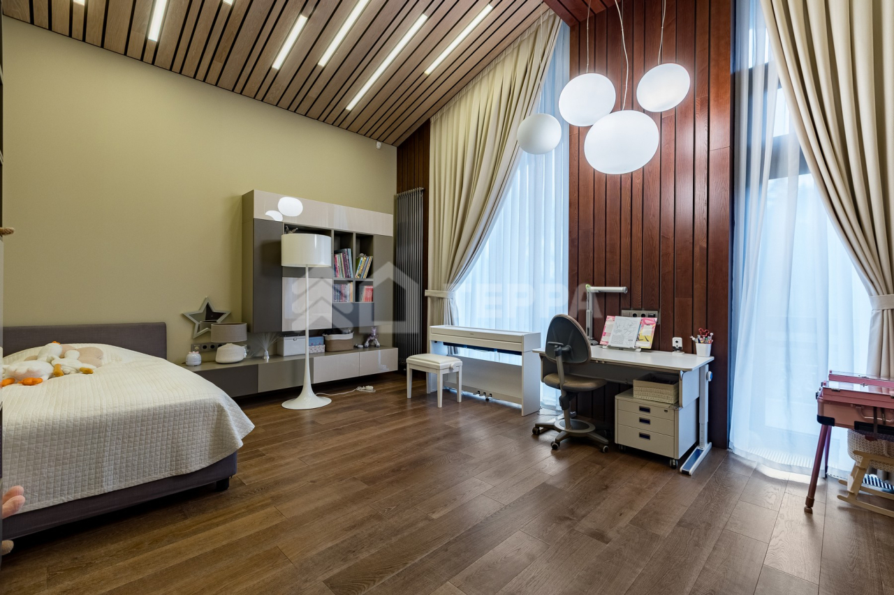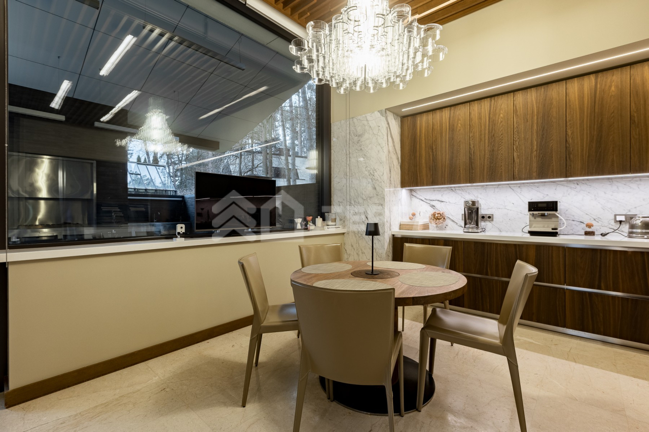 Особенность дома: просторные помещения с продуманным функционалом, включая собственный лифт, элегантный кабинет, четыре спальни с отдельными санузлами, двухкомнатную квартиру специально обустроенную для проживания обслуживающего персонала, гараж на два автомобиля, благоустроенную парковочную зону, просторную террасу с барбекю. Участок площадью 20 соток с профессионально разработанным ландшафтным дизайном.