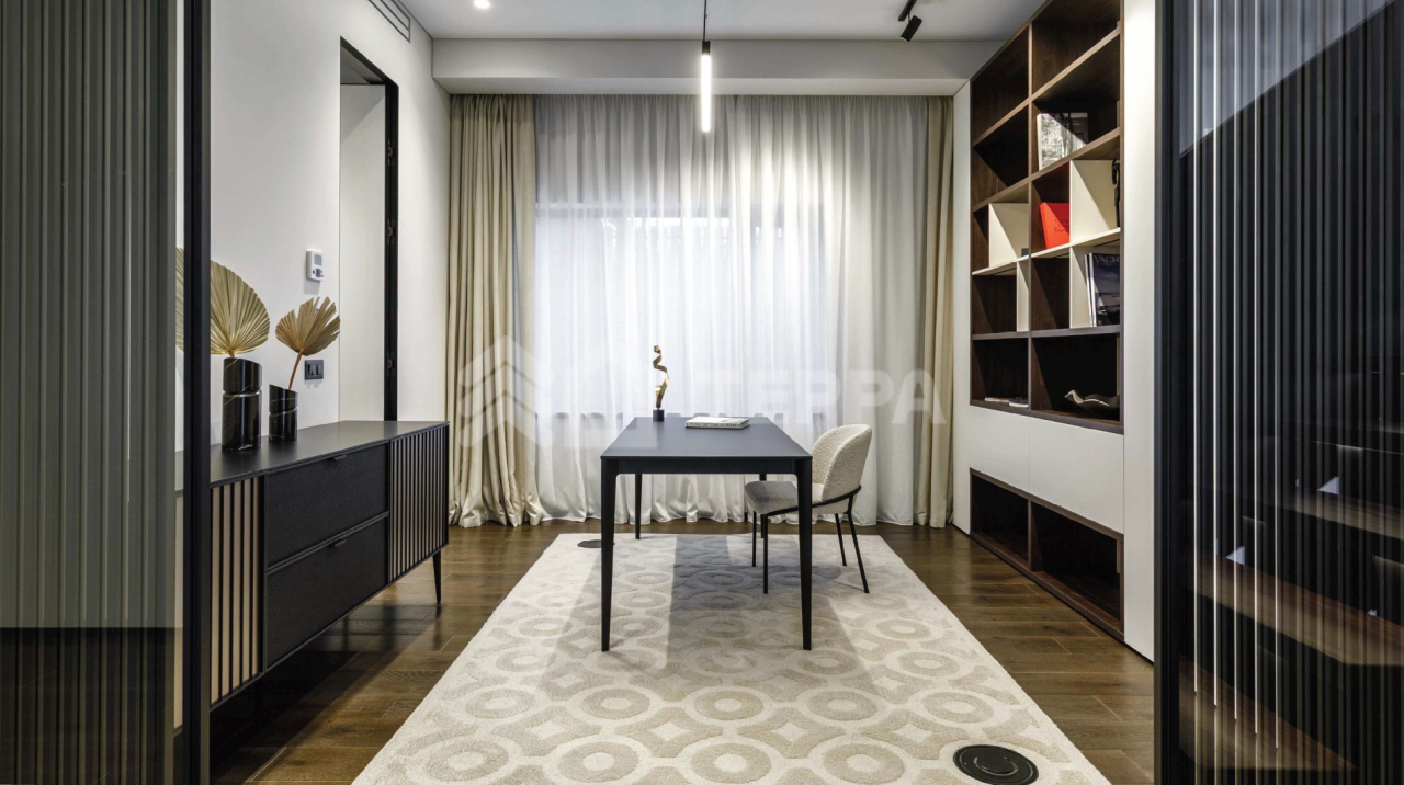 В доме воплощен принцип естественного света: панорамные энергосберегающие, дерево - алюминиевые окна с климат-контролем. Немецкий утеплитель из древесного волокна Gutex. На полу — натуральный паркет, под которым расположена массивная бетонная плита с интегрированной системой тёплого пола. Все отопление подключено к системе удалённого управления: температуру можно настраивать со смартфона. Умный дом HitePro с возможностью управлять освещением, шторами, гаражными воротами. Система видеонаблюдения на базе программного обеспечения Hikvision с возможностью наращивания количества видеокамер, архив записей до 30 дней, просмотр камер в режиме реального времени с мобильного устройства и планшета, прием звонков с домофона с возможностью открытия калитки с телефона. Современная система беспроводной пожарной сигнализации Аргус-Спектр с возможностью контроля датчиков через приложение. Полное бесшовное покрытие Wi-Fi нового поколения, с возможностью управления сетью через облачный контролер OmadaTP-Link.