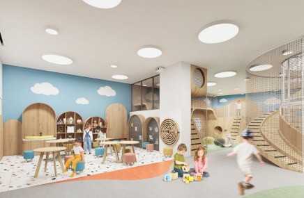 Для активных и спортивных жителей дома по концепции FIT LAB разработаны бесплатный фитнес-клуб и многофункциональная спортивная площадка с зоной workout. Для ежедневных впечатлений юных жильцов - развивающие игровые пространства по стандарту KID`S LAB и частный детский сад.