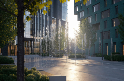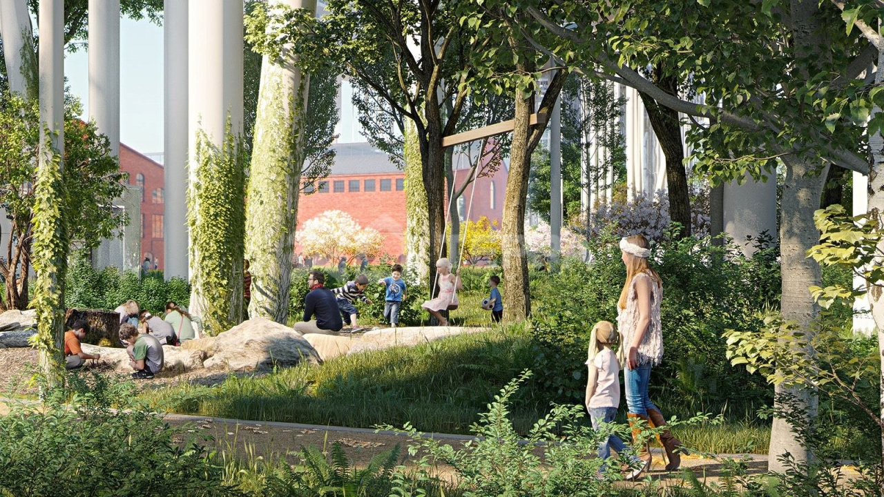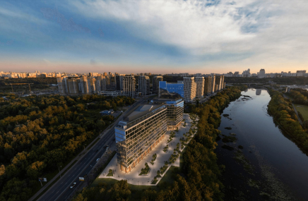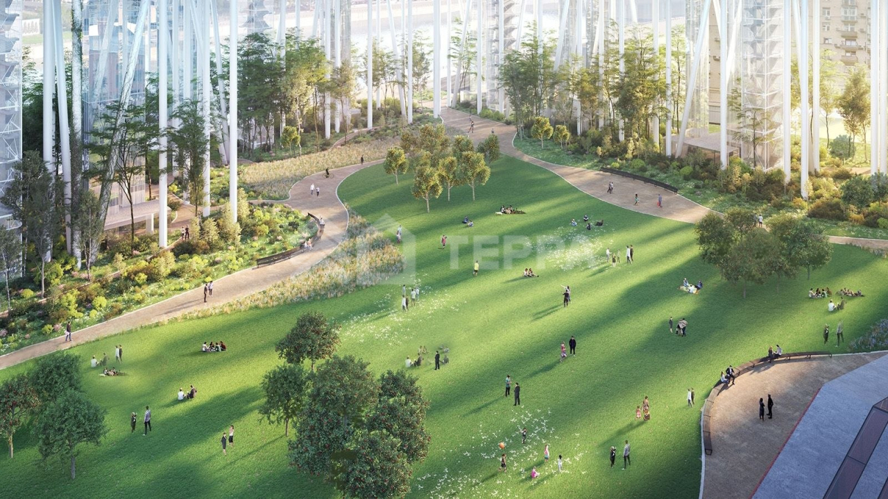 Воспарив на высоте, жилые здания уступают нижний уровень обширному, вдумчиво устроенному парку. Это безопасная открытая территория без машин и новая знаковая точка на карте города. Парк демонстрирует и натуральное многообразие природы, и тонкую работу с технологиями. Это ландшафтный дизайн высочайшего уровня: он достигает своих целей незаметно и воспринимается естественно.