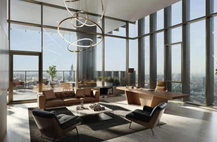 Каждая квартира имеет выход на индивидуальный балкон — один из тех, что огибают здание и формируют характерный фасад. Завораживающий вид дополняется обилием света благодаря панорамному остеклению. Гибкий метраж даёт возможность тонкой настройки жилого пространства. Самое интересное в этих квартирах — ни с чем не сравнимое, новое ощущение высоты. Подобного никто никогда не испытывал: целый дом парит в воздухе, грациозно возвышаясь над парком, набережной и историческими зданиями.