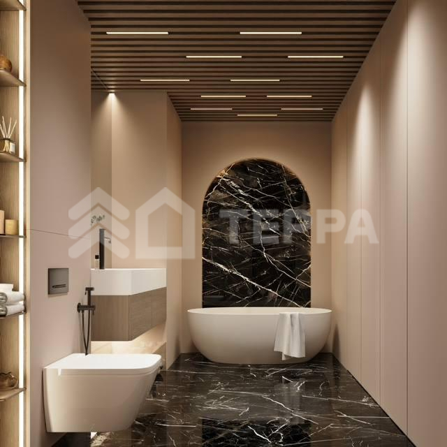 Уютная гостиная совмещенная с большой кухней площадью 35 м2 станет центром притяжения ваших близких и друзей. Три вместительных гардеробных обеспечат порядок и комфорт, а две прекрасно оборудованные ванны подарят моменты полного расслабления. Особое внимание уделено качеству каждого элемента интерьера: эксклюзивные отделочные материалы — мрамор, дерево и шпон создают неповторимую атмосферу тепла и уюта. Современная дизайнерская мебель и оригинальное освещение подчеркнут ваш безупречный вкус. Здесь собраны лучшие бренды и технологии: высококачественная немецкая сантехника, надежная кухонная техника Bosch, а также уникальная климатическая система Electrolux с возможностью индивидуальной регулировки температуры в каждой комнате. Отдельное пространство для отдыха в спальне с собственной ванной комнатой и гардеробной, удобное решение с отдельной постирочной. Но самое главное — невероятные панорамы Москвы, открывающиеся с высоты 24-го этажа. Здесь каждое утро начинается с великолепного вида на город, наполненного светом и радостью нового дня.