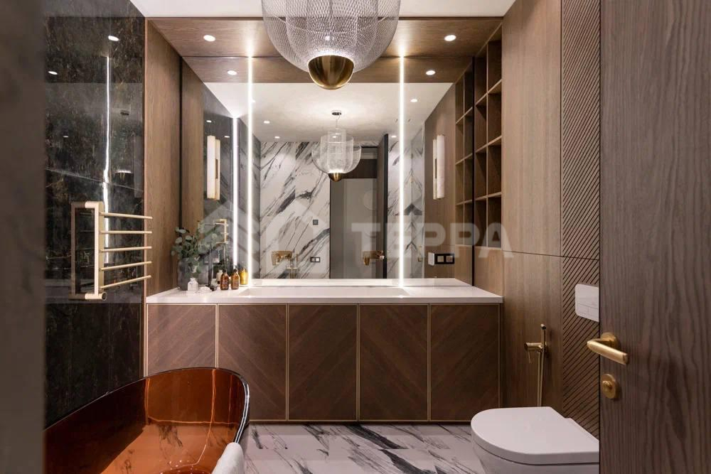 Два роскошных мастер блока: площадью 40 м? и 30 м?, каждый оснащен собственным санузлом и гардеробной зоной. Отдельная детская комната также имеет собственную гардеробную зону. Полностью меблированная квартира с качественной встроенной бытовой техникой. Использованы высококачественные натуральные отделочные материалы. Установлены современные системы климат-контроля и аквастопы для комфорта и безопасности жильцов.