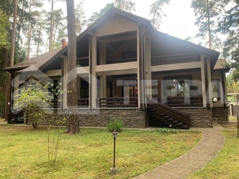 Загородный дом площадью 570 м2 построен на участке 30 соток в окружении многолетних деревьев. Планировка резиденции включает 3 спальни, гостиную со вторым светом, кухню-столовую, кабинет, сауну, купель, бильярдную и тренажерный зал.