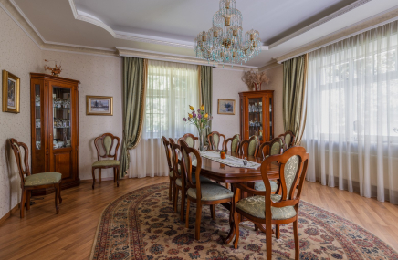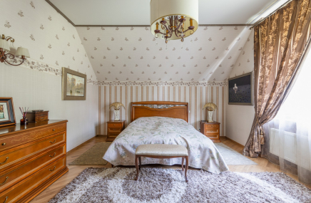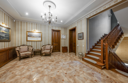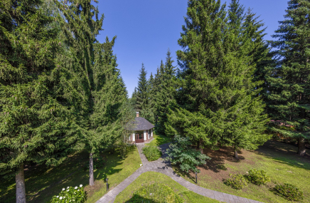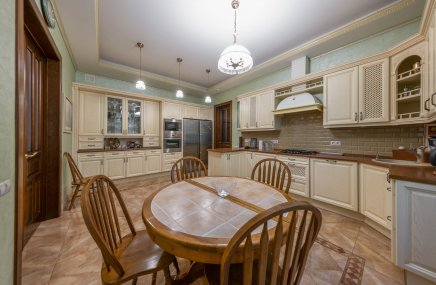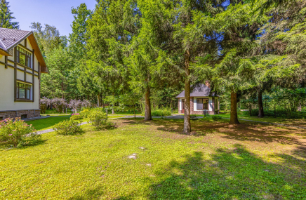 Уникальная резиденция на 1 га в приватной лесной части поселка. Планировка дома включает в себя парадную зону столовой для приема гостей, 7 спален, бассейн 18 м., рабочая кухня с лифтом подачи. Два крыла дома разделяют спальную зону на хозяйскую и детскую. В отделке дома использованы высококачественные отделочные материалы, натурально дерево, установлены инженерные системы высокого уровня. В зоне отдыха гостиной установлен портал камина 18-го века. Третий уровень дома - это выход на эксплуатируемую кровлю, где можно оборудовать прекрасное патио. В обстановке интерьера представлены следующие марки мебели мирового уровня: Chelini, Zonta, Giorgio Piotto, Provasi, Vittorio Grifoni, Flexform, Angelo Cappelini.