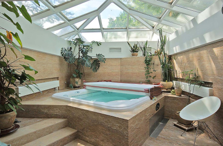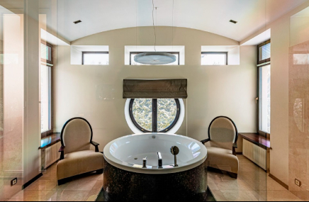 На цокольном этаже разместились кинотеатр, спортзал, помещения для хранения и спа-зона (джакузи, сауна, душевые, комната отдыха).