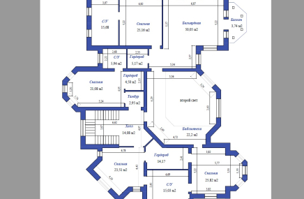 - Мастер блок: спальня, гардеробная, кабинет, ванная комната
