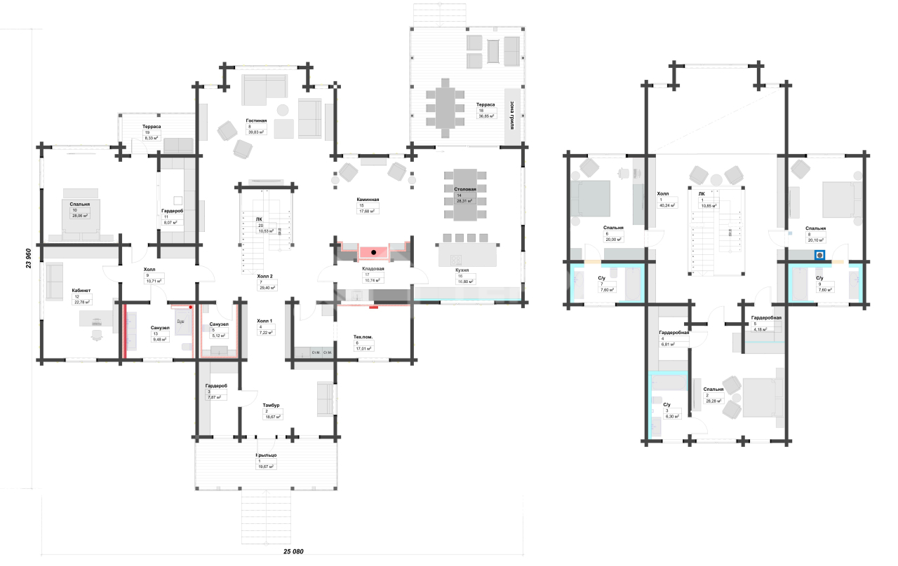 • мастер блок: спальня, гардеробная, ванная комната, терраса