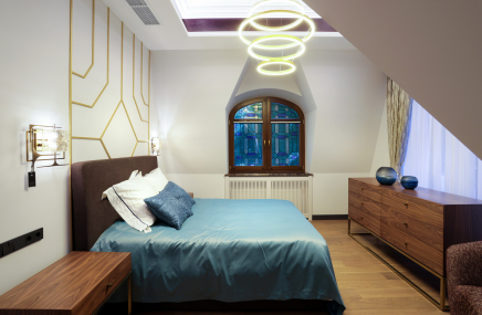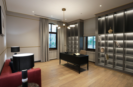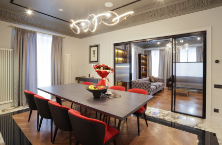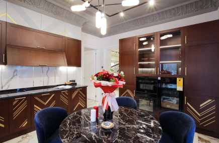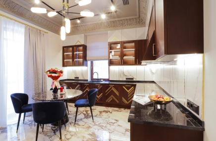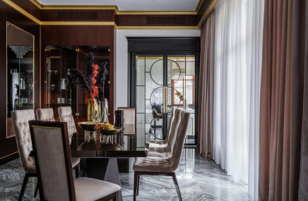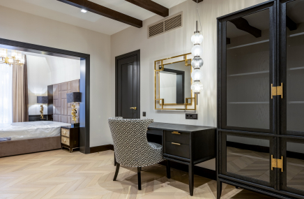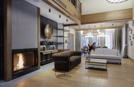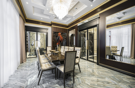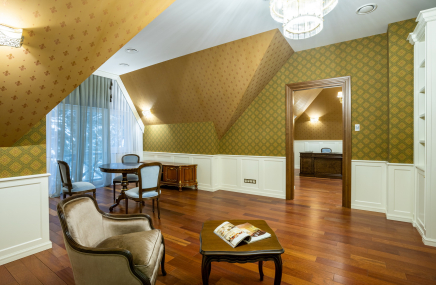 На берегу озера, недалеко от въезда находится ресторан премиум-класса с изысканной французской кухней. Здание ресторана выполнено согласно общей архитектурной идее поселка и напоминает летнюю резиденцию французских королей. Тоже относится к убранству ресторана – роскошь и изысканный вкус каждой детали.