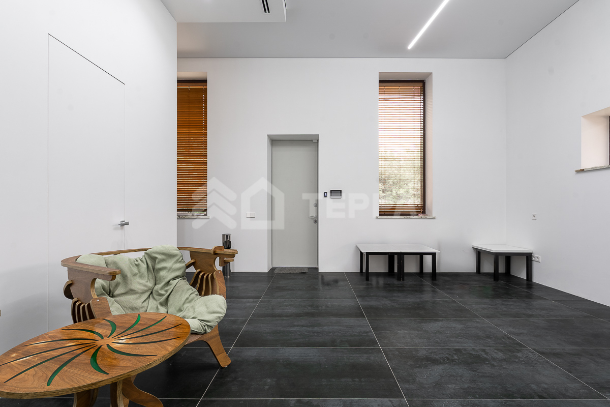 отдельным входом. Архитектурные и инженерные решения: дом построен из газосиликатных блоков, предусмотрена система канального кондиционирования, фасады из фиброцементных панелей и лиственницы, фасадная и интерьерная подсветка "Центрсвет".