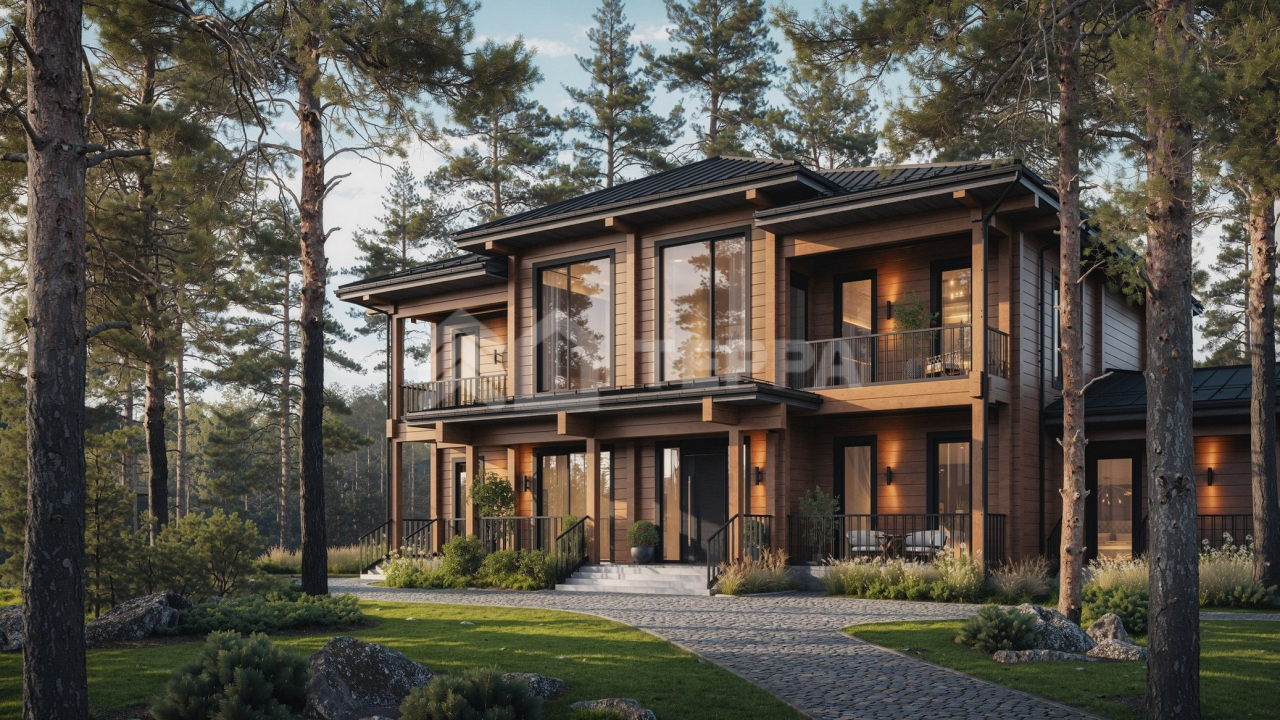 К продаже предлагается вилла 545 м2 на лесном участке 31 сотка, в камерной резиденции «Заозерье», в реликтовом лесу. Резиденция входит в территорию пятизвёздочного загородного отеля «Изумрудный лес» известной сети Cosmos Collection. Сам поселок, хотя и интегрирован в общую структуру отеля Cosmos Collection Izumrudny Les 5*, является закрытой обособленной территорией, оформленной как естественный природный парк с каскадом озер, прогулочных аллей и уголками уединенного отдыха — ротондами. Территория парка включает собственный пляж, ресторан, банный комплекс, спортивные площадки и детские игровые зоны. Дом из клееного бруса (брус увеличенного размера!) Панорамные окна HORMANN.