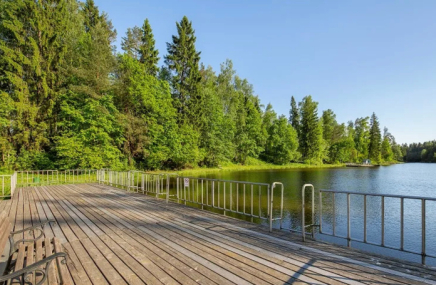 Большой участок 31 сотка с взрослыми хвойными деревьями, правильной формы, и самый высокий в поселке - именно поэтому с него открываются живописные виды на лес.