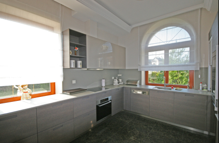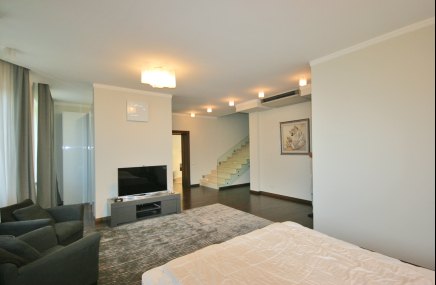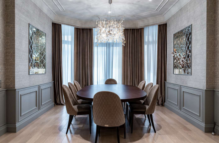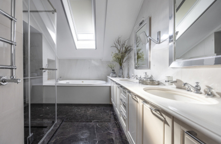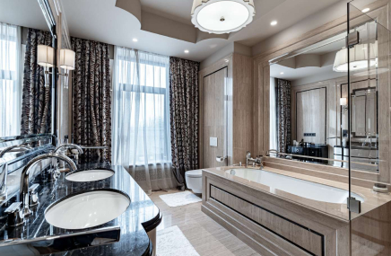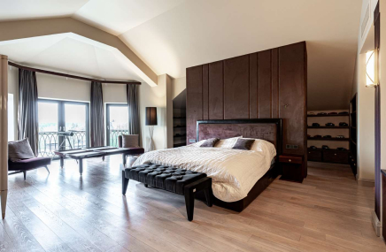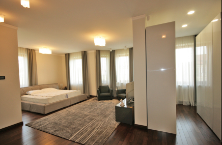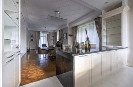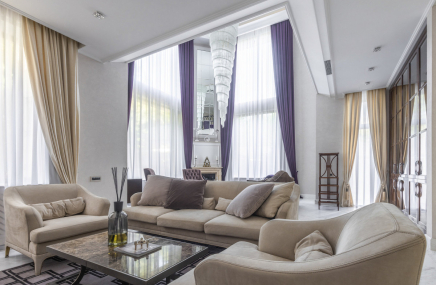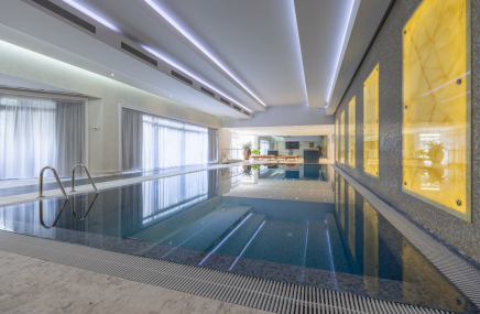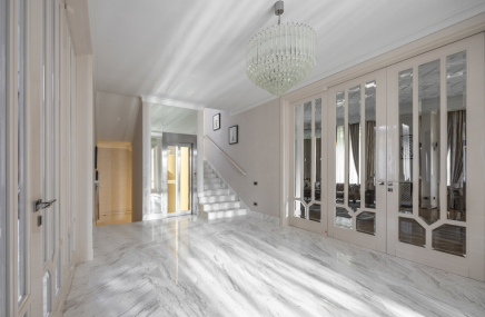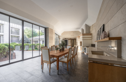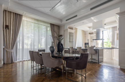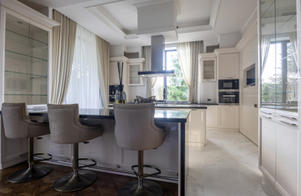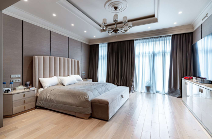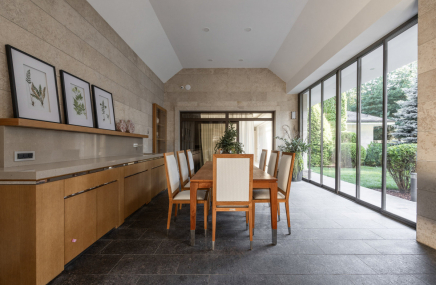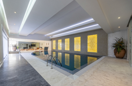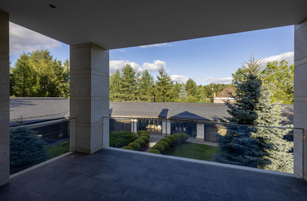 Четкое функциональное зонирование разделяет дом на приватные, общественные, СПА зоны и служебный блок. Высококачественные отделочные материалы, такие как керамика LAMINAM и натуральный камень, подчеркивают стиль и изящество.