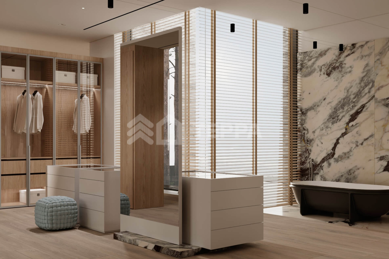 - мастер-спальня с ванной комнатой гардеробной и выходом на террасу