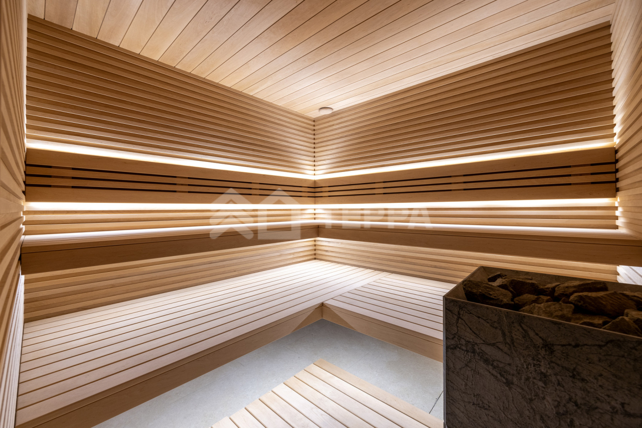 - СПА блок: бассейн, хаммам, купель, сауна; кладовая, постирочная, 2 гардеробные