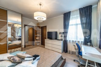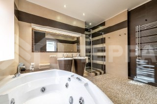 Для внутренней отделки использованы исключительно натуральные и высококачественные материалы, которые дополняются элегантной мебелью премиум-класса и современной бытовой техникой Gaggenau (Германия). Система освещения Martini (Италия) подчеркивает каждую деталь интерьера, а система кондиционирования Mitsubishi поддерживает идеальный микроклимат круглый год. Теплый гараж дополнен удобным навесом для автомобиля. Территория благоустроена, украшена декоративными растениями и окружена живым зеленым забором из высоких туй.