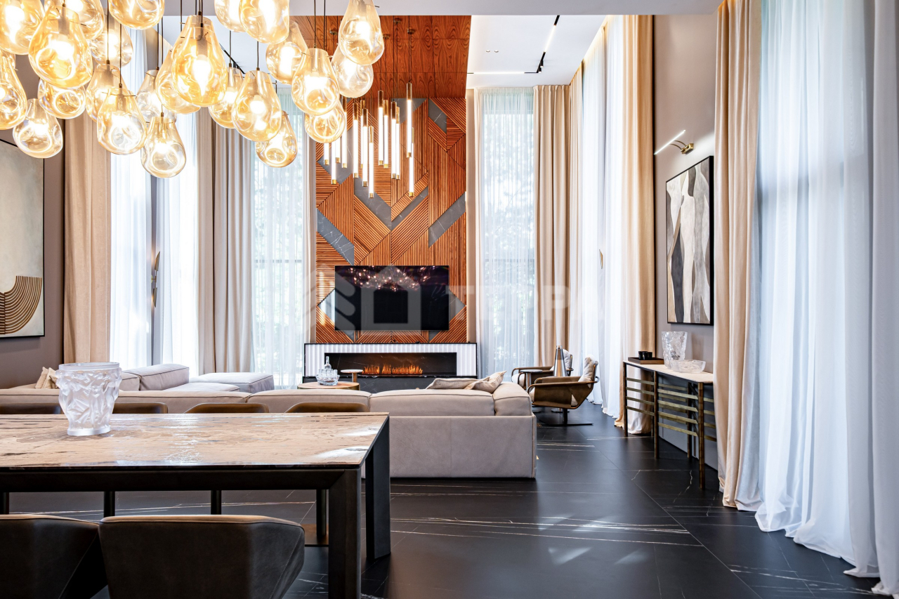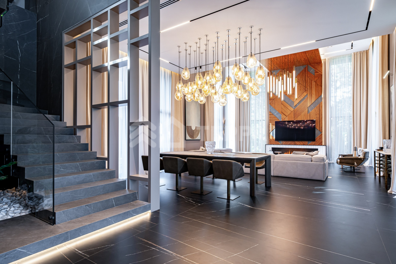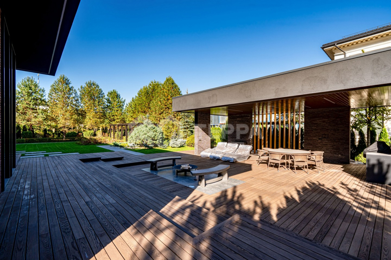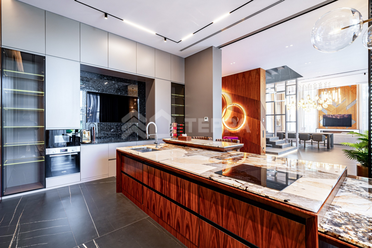 Дом оснащен современной бытовой техникой премиум-класса: 9 телевизоров Samsung, расположенные в каждой комнате дома. Техника немецкой марки Bosch на кухне и в бытовых зонах. Отопление разведено трубопроводами из сшитого полиэтилена, установлены котлы Viessmann, конвекторы Vitron, стальные дизайнерские радиаторы Whsteel. Индивидуальная настройка температуры полов и радиаторов позволяет поддерживать оптимальную температуру в каждом помещении индивидуально. Встроенная система кондиционирования с кондиционерами Mitsubishi обеспечивает комфортный микроклимат. Мебель: португальская Frato и итальянская Henge. Сантехника: итальянские бренды CEA и Antonio Lupi. Освещение: люстры и светильники от итальянских брендов и компании ЦентрСвет. Уличная кухня оснащена качественной техникой Bosch и грилем Napoleon. Большая красивая удобная барбекю зона с холодильником, посудомоечной машиной и грилем. Навес на три автомобиля.