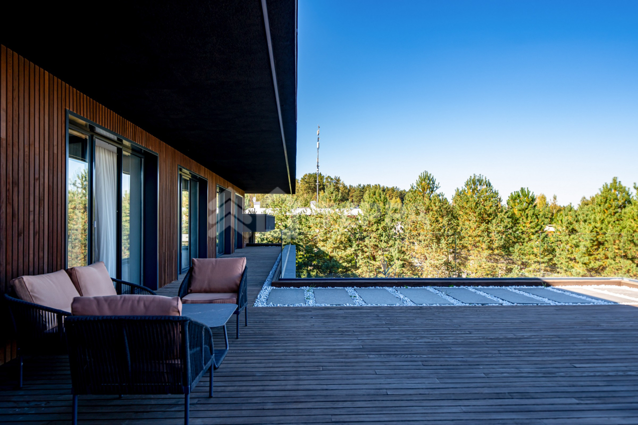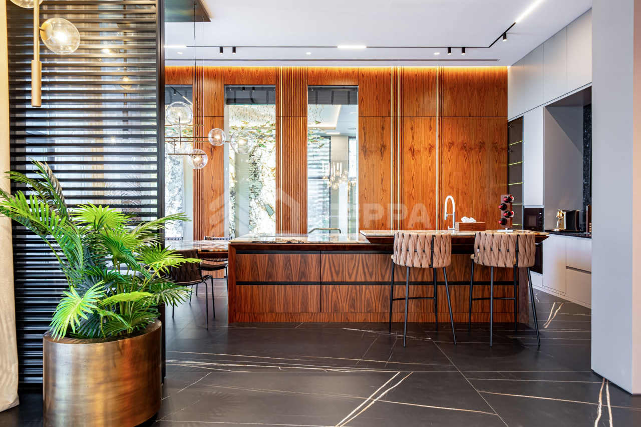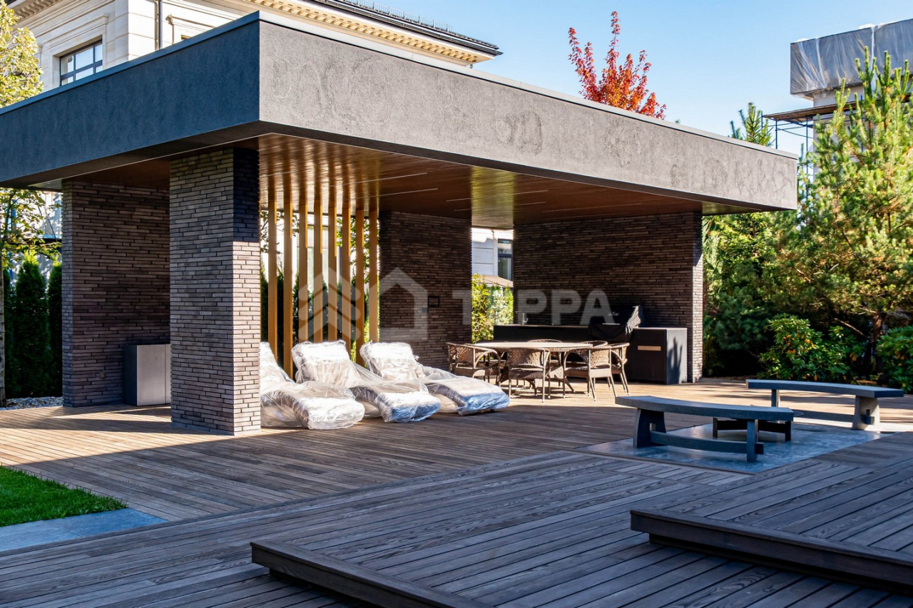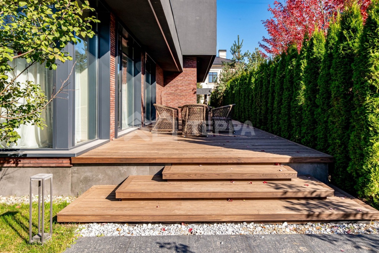 Дом оснащен современной бытовой техникой премиум-класса: 9 телевизоров Samsung, расположенные в каждой комнате дома. Техника немецкой марки Bosch на кухне и в бытовых зонах. Отопление разведено трубопроводами из сшитого полиэтилена, установлены котлы Viessmann, конвекторы Vitron, стальные дизайнерские радиаторы Whsteel. Индивидуальная настройка температуры полов и радиаторов позволяет поддерживать оптимальную температуру в каждом помещении индивидуально. Встроенная система кондиционирования с кондиционерами Mitsubishi обеспечивает комфортный микроклимат. Мебель: португальская Frato и итальянская Henge. Сантехника: итальянские бренды CEA и Antonio Lupi. Освещение: люстры и светильники от итальянских брендов и компании ЦентрСвет. Уличная кухня оснащена качественной техникой Bosch и грилем Napoleon. Большая красивая удобная барбекю зона с холодильником, посудомоечной машиной и грилем. Навес на три автомобиля.