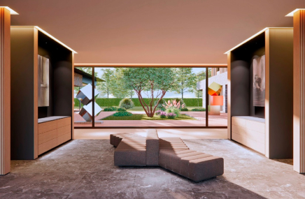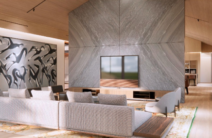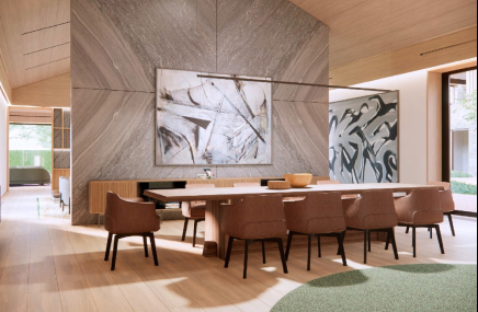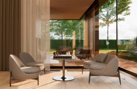 - обширные холлы с каминными зонами и высокими потолками