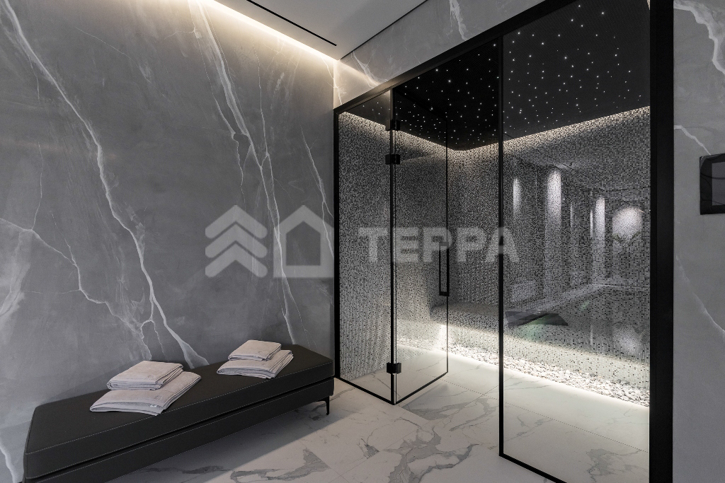 - СПА-зона: хамам, с/у, бассейн 9 х 4 м, спортзал, гараж на 2 авто, квартира для персонала с отдельным входом
