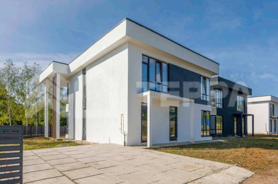 Дом построен по всем канонам современной архитектуры. Фасад выполнен из светлой штукатурки в сочетании с темной. В доме 4 спальни, каждая со своим санузлом и гардеробной.