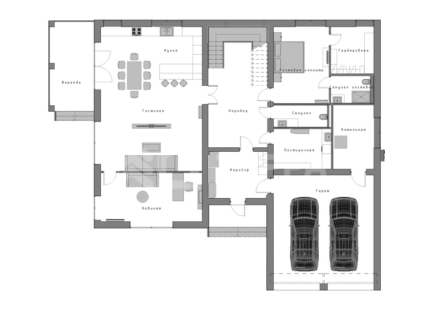 - кухня-столовая-гостиная с выходом на террасу