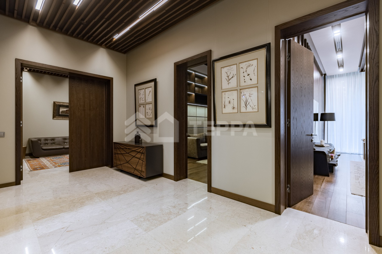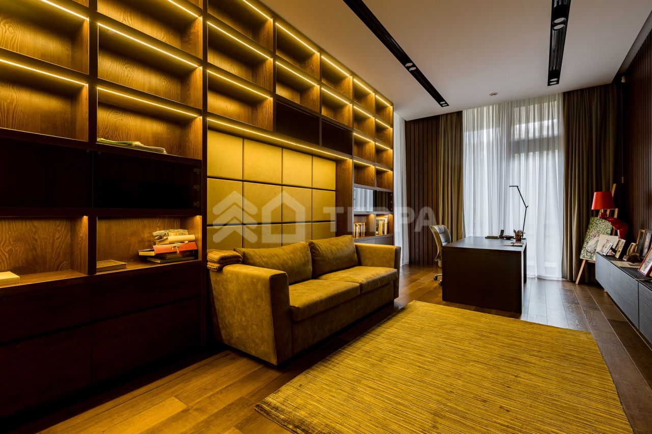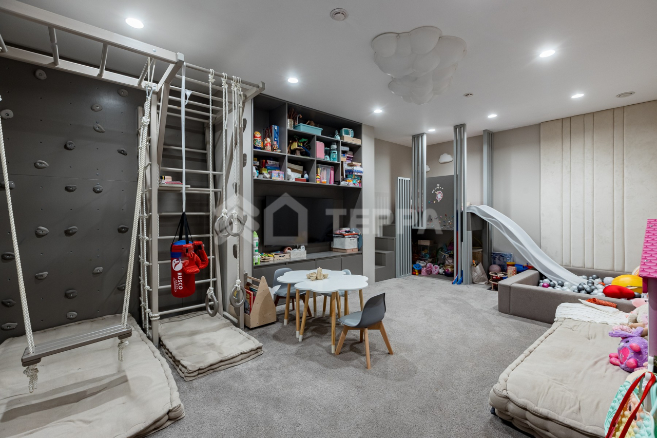 Особенность дома: просторные помещения с продуманным функционалом, включая собственный лифт, элегантный кабинет, четыре спальни с отдельными санузлами, двухкомнатную квартиру специально обустроенную для проживания обслуживающего персонала, гараж на два автомобиля, благоустроенную парковочную зону, просторную террасу с барбекю. Участок площадью 20 соток с профессионально разработанным ландшафтным дизайном.