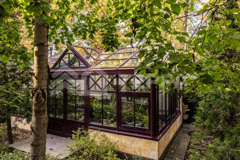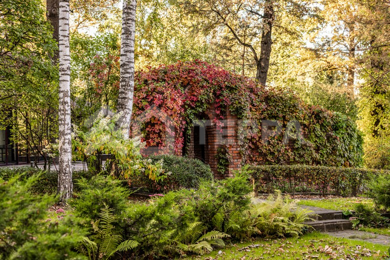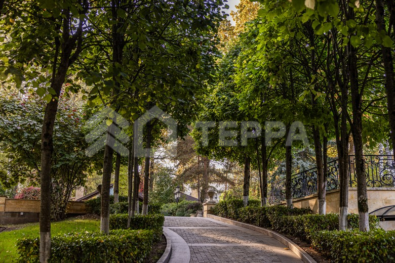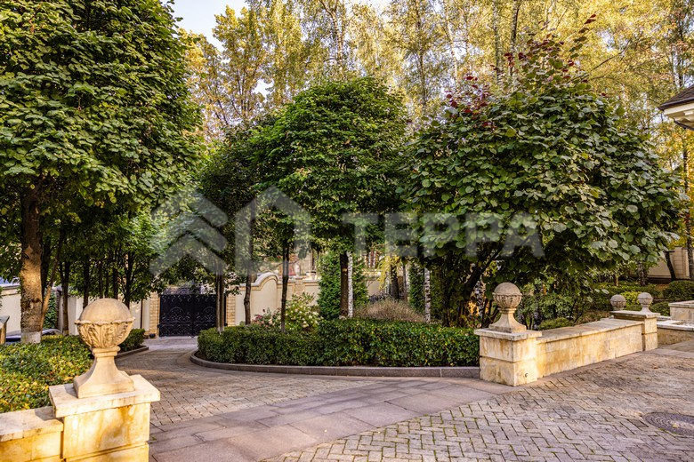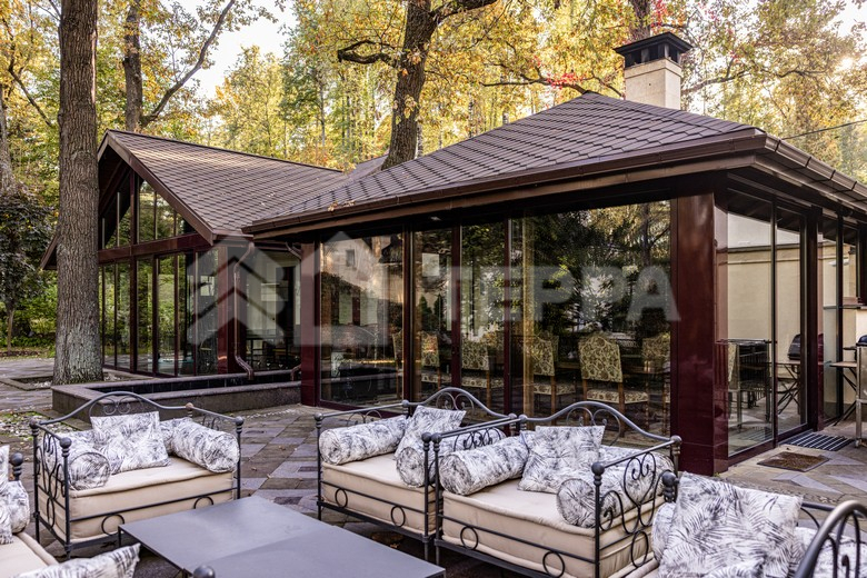 Дополнительные строения образуют завершенную инфраструктуру: павильон для приемов с террасой, винный погреб с дегустационной зоной, дом для персонала, помещение охраны, домик садовника у оранжереи и теплый гараж на 2 м/м создают идеальную среду для жизни, где природа и архитектура существуют в неразрывном единстве. Гостевой дом № 1 это комфортабельное пространство для приема и размещения гостей и включает в себя: столовую, 3 спальни, 3 санузла, коридор, 2 террасы, котельную. Гостевой дом № 2 это пространство для досуга и неформальных приемов и включает в себя: кухню, столовую, бар, каминный зал, гардеробную, террасу.