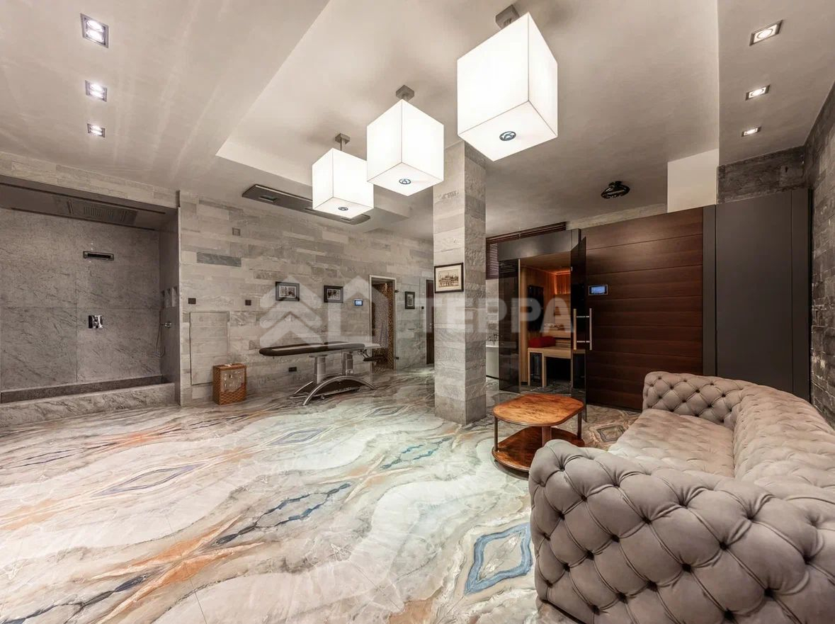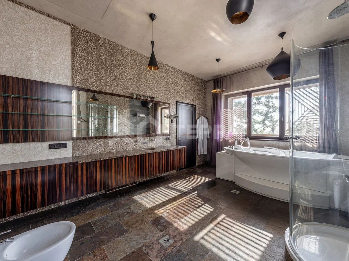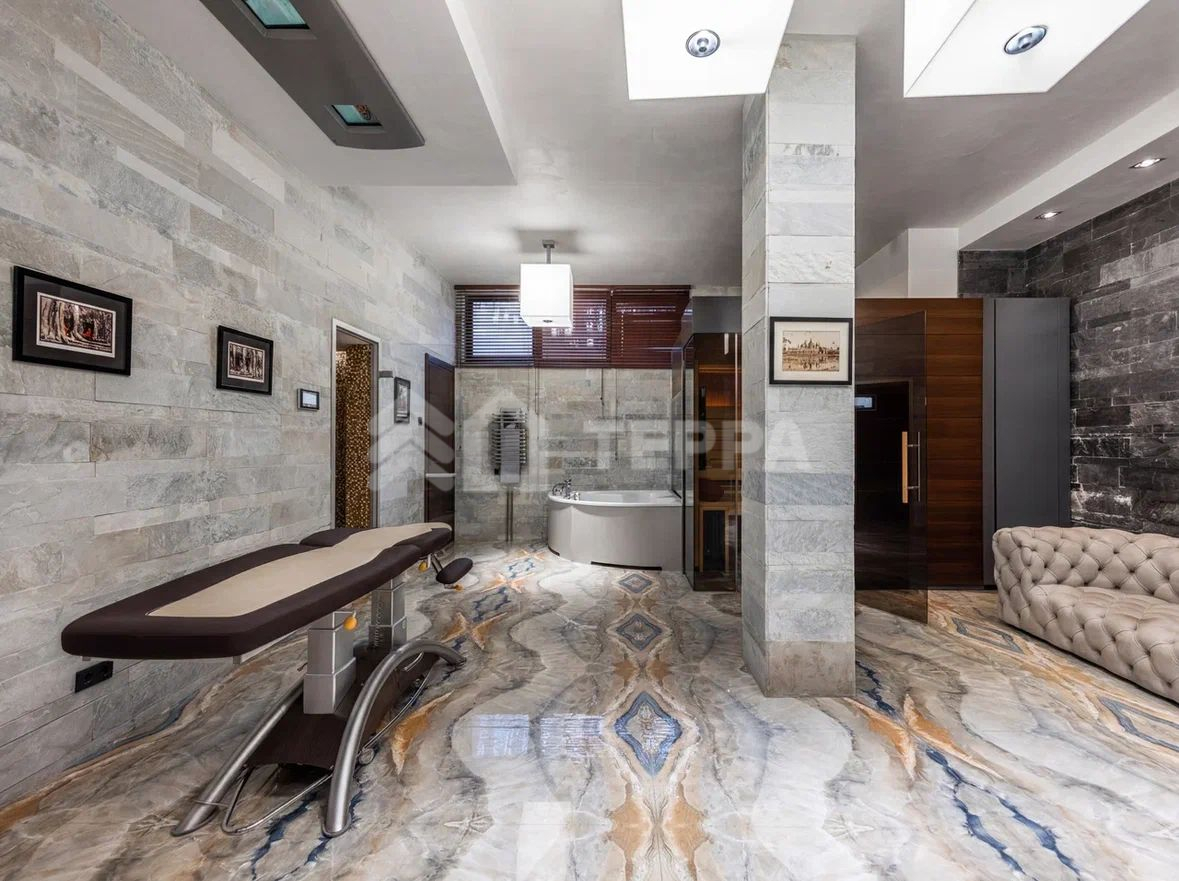 В доме предусмотрены просторная гостиная с камином и выходом на террасу, 2 кухни: La Cornue и голландская Culimaat, каждая спальня имеет собственный санузел, действующий камин в мастер-спальне, домашний кинотеатр, SPA зона с баней, хамам, солярий – KLAFS, выход на террасы, помещения для обслуживающего персонала, видеонаблюдение.
