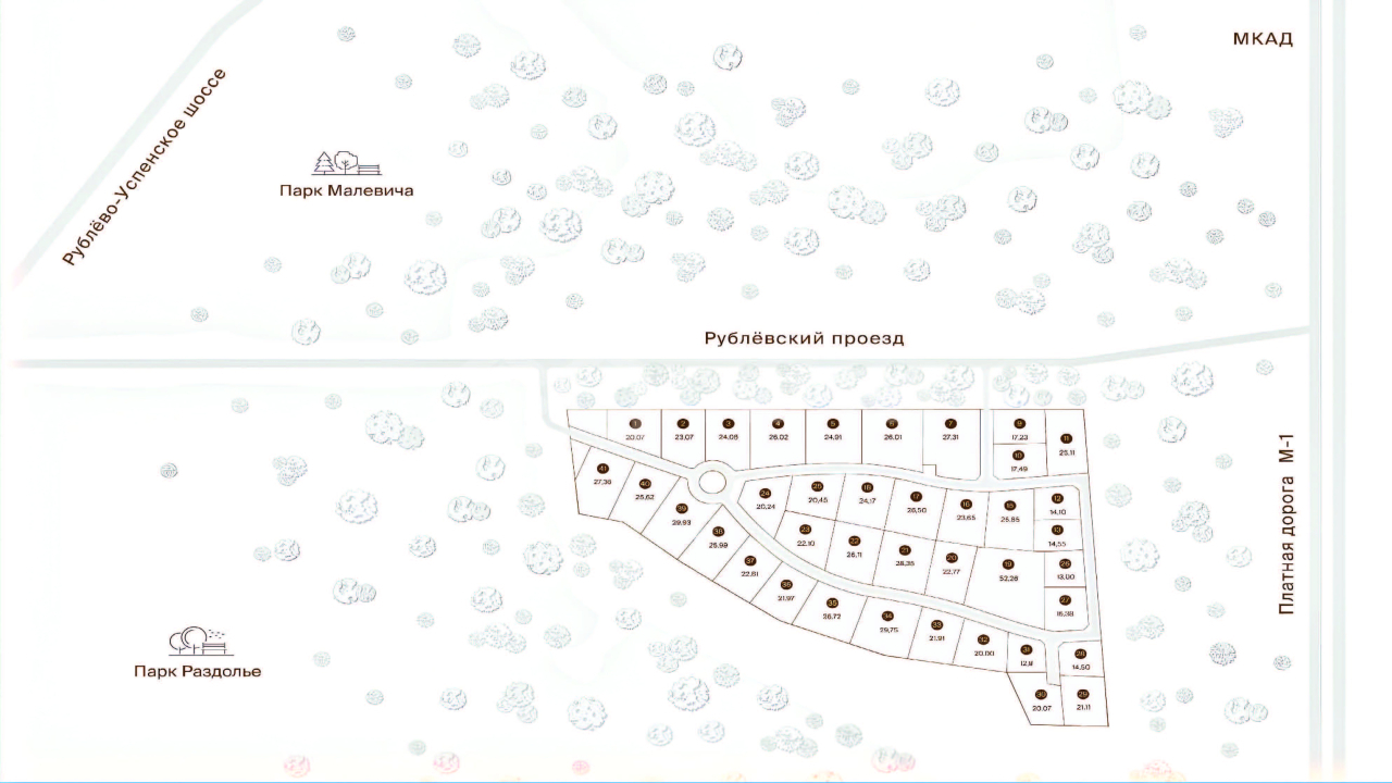 Ромашково-21 - это клубный поселок на 40 домовладений. Поселок расположен на Рублево-Успенском шоссе всего в 8км от МКАД, при этом имеет самый удобный и быстрый выезд на платную трассу Северный Обьезд Одиноцова. В шаговой доступности от поселка расположены известны парки - Раздолье и Парк Малевича.