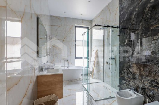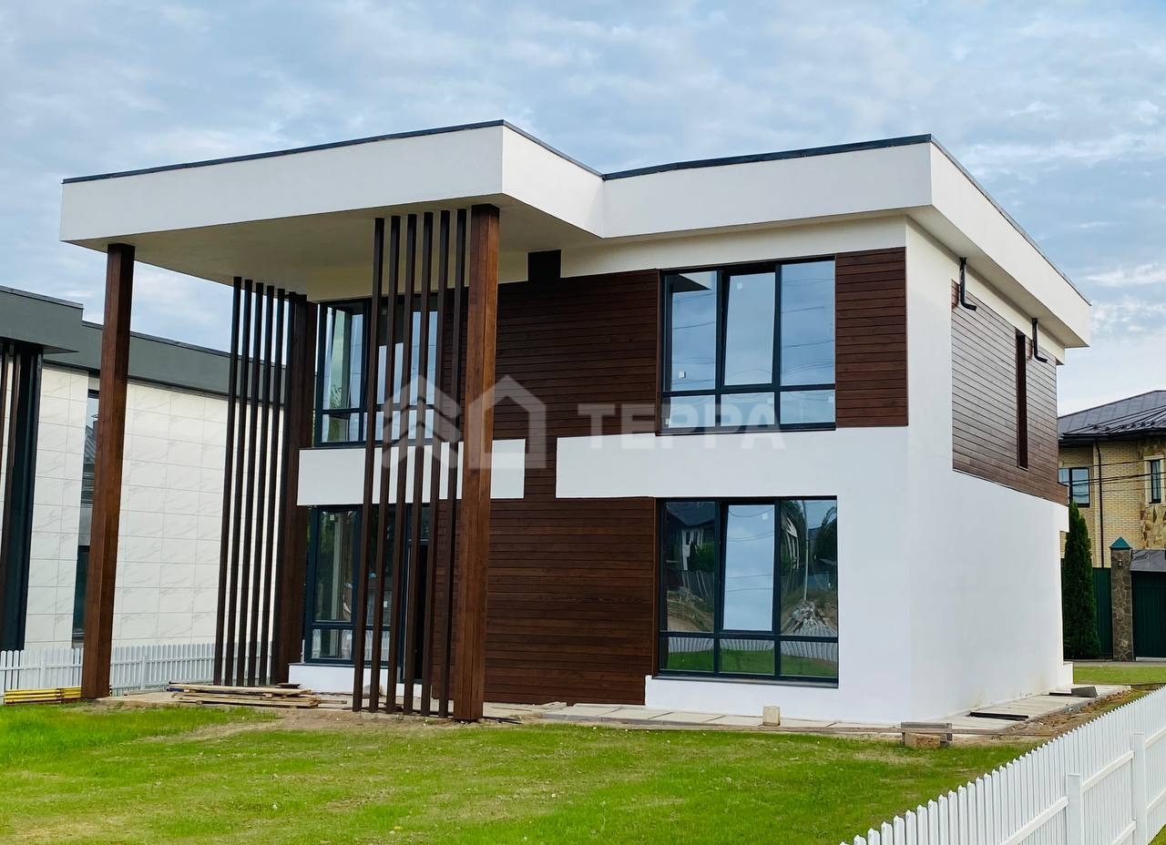 Дом современной, модной инфраструктуры, выполнен актуальный авторский дизайн в стиле contemporary. Фасад дома выполнен из сочетания декоративной штукатурки белого цвета и планкена из лиственницы. Такая комбинация придает дому законченный и благородный вид. Дом подключен ко всем инженерным коммуникациям: магистральный газ, электричество 15 кВт, скважина, канализация - локальные мини очистные. На первом этаже прихожая, гостевая спальня со своими санузлом, которую при желании можно превратить в рабочий кабинет. Под лестницей размещена просторная постирочная. Кухня с кладовой, столовая с выходом на террасу и светлая гостиная. В помещении с отдельным входом расположена газовая котельная.
