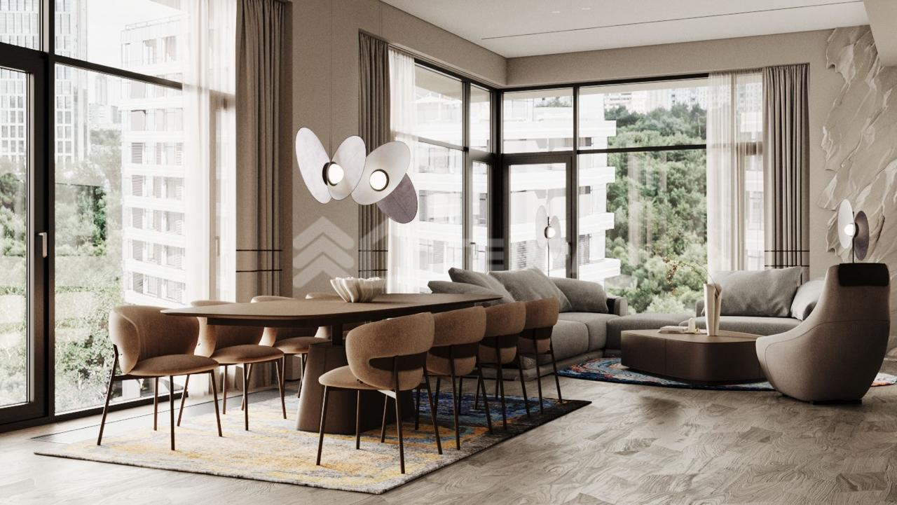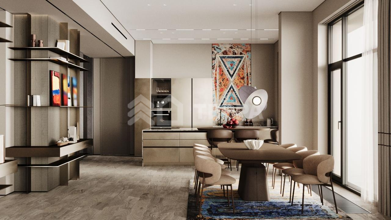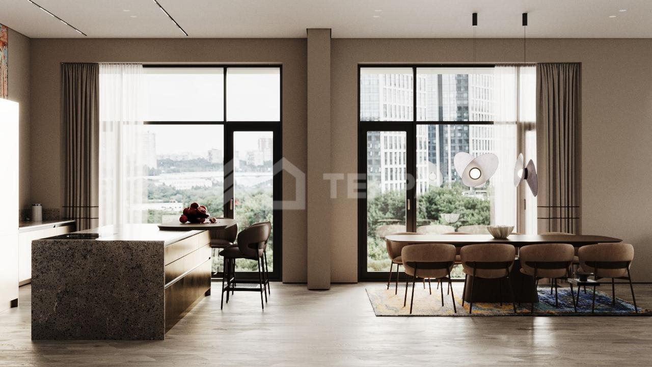 Продаётся уникальная пятикомнатная квартира в элитном клубном доме «Река» от застройщика Donstroy. Просторная жилая площадь оборудована двумя просторными лоджиями с панорамным видом на внутренний благоустроенный двор. Высота потолков составляет внушительные 3640 мм, оконные проёмы достигают высоты 3225 мм для основного остекления и 2700 мм для балконных окон. Парапет балкона имеет высоту 640 мм, обеспечивая безопасность и комфорт. Дверные проемы высотой 2450 мм подчеркивают премиальность жилья, а качественная цементная стяжка толщиной 100 мм гарантирует ровные полы под чистовую отделку.